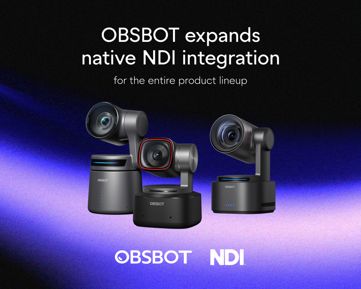 Our partnership with OBSBOT brings native and license-free NDI support across OBSBOT’s intelligent camera products.